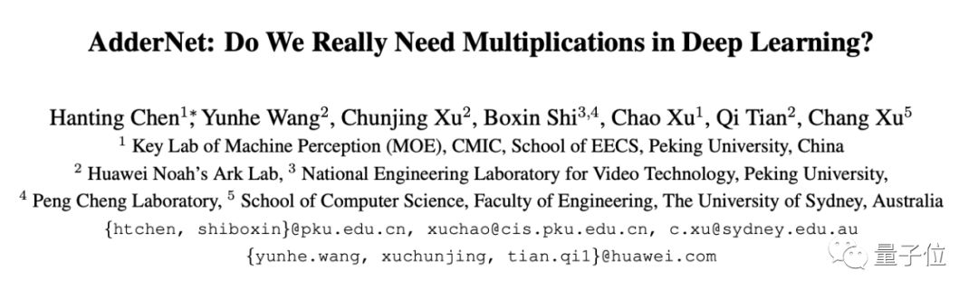 去年年底,来自北京大学、华为诺亚方舟实验室、鹏城实验室的研究人员将这一想法付诸实践,他们提出了一种只用加法的神经网络AdderNet(加法器网络)。一作是华为诺亚方舟实习生,正在北大读博三。