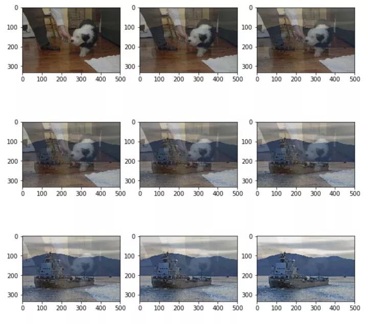 我们通过matplotlib来可视化mixup这个过程,二张图片的mixup结果随着lam的变化而发生渐变
