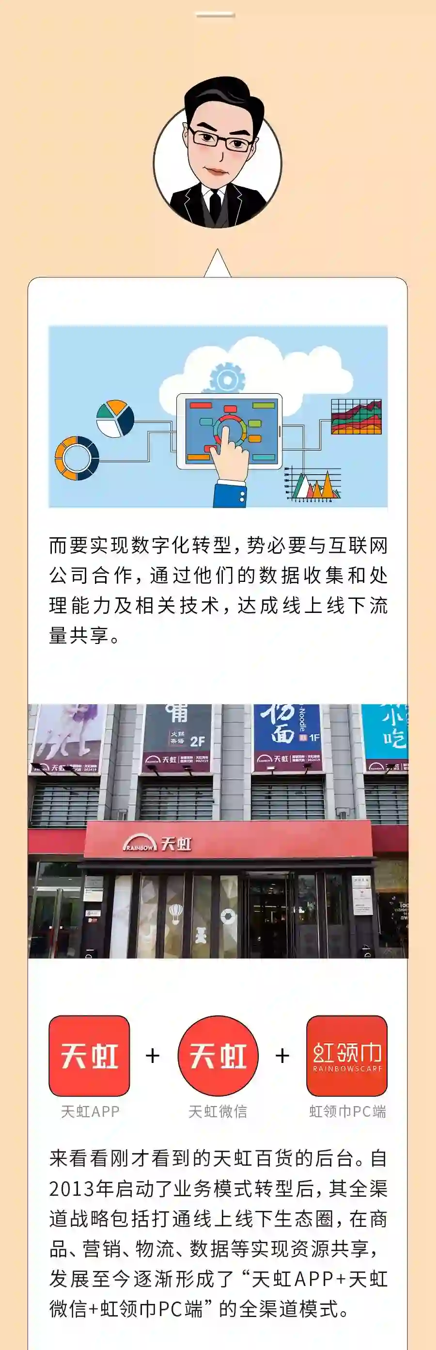 传统百货业大多数仍是经销商代理模式,中间环节过多,导致终端渠道上商品价格偏高,在电商的冲击下失去了竞争力。投身阿里腾讯,进行互联网+的改造能让他们获得新生吗?