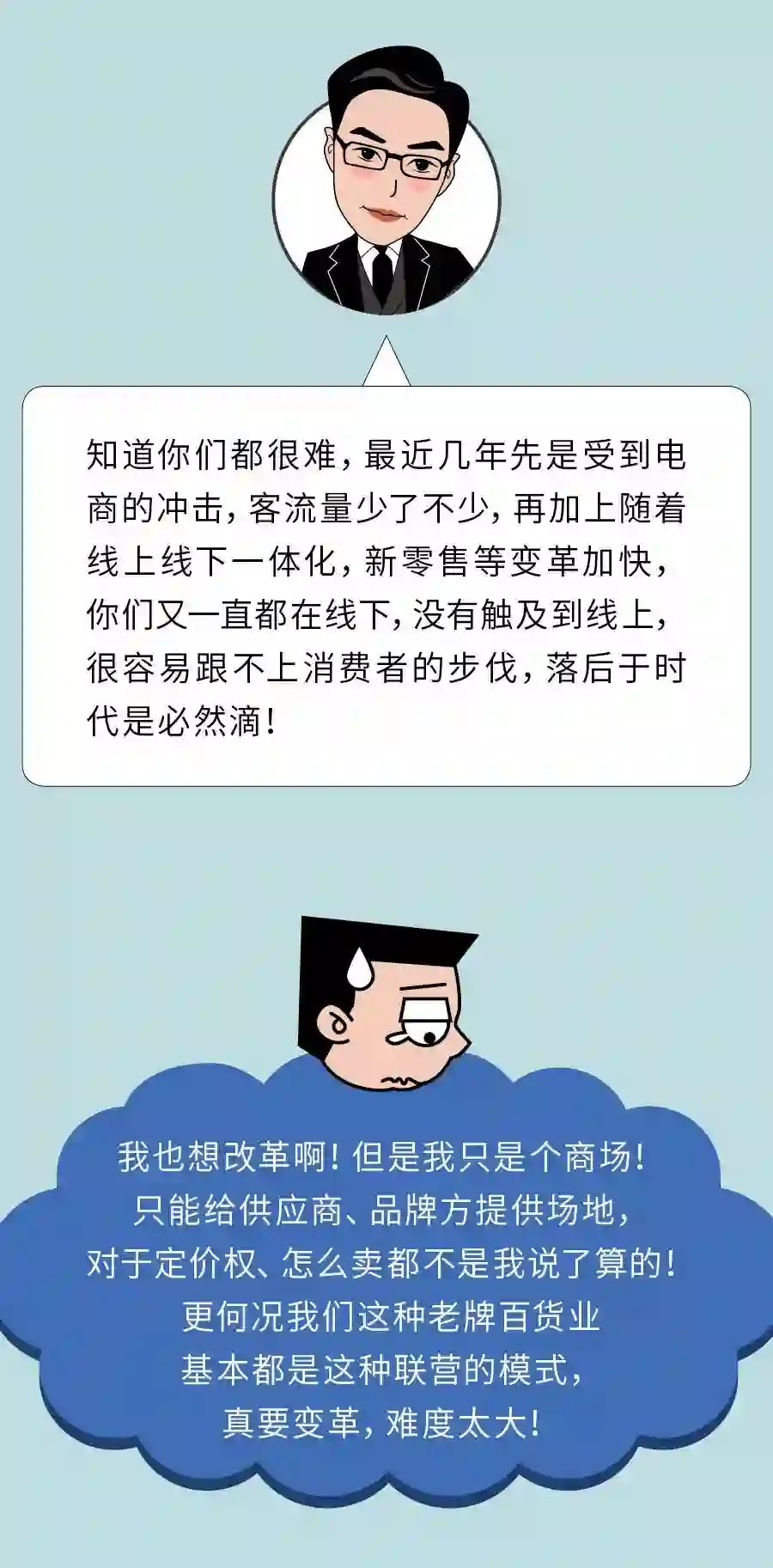 古老的百货业挣扎了数年,大品牌在一个个死去。生存与死亡的格斗却从没停止! 继2019年3月,开业29年的长安百货宣布闭店改造后,6月底,有着27年历史的赛特百货也将“迎来”自己命运的终点。就连百货业鼻祖美国西尔斯百货,也于2018年10月正式进入了破产清算阶段。 传统百货业大多数仍是经销商代理模式,中间环节过多,导致终端渠道上商品价格偏高,在电商的冲击下失去了竞争力。投身阿里腾讯,进行互联网+的改造能让他们获得新生吗?
