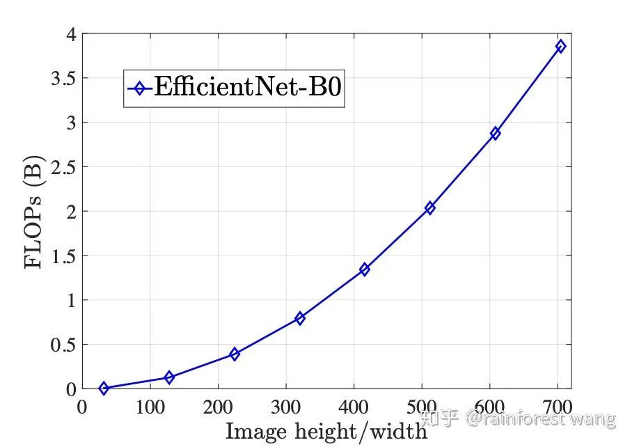然而,这种方式会带来较大的计算开销,因为推理CNN所需的计算量(FLOPs)基本与像素数目成正比[5],即与图形的长、宽成二次关系,如下图所示: