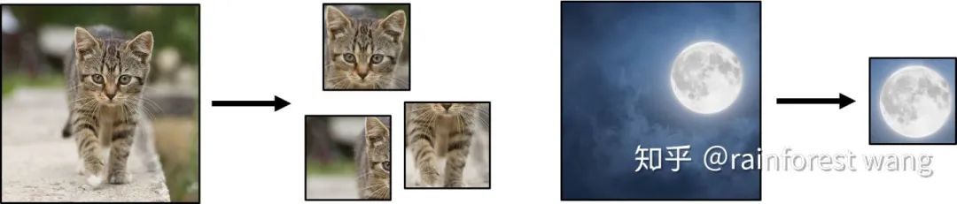 (b) 考虑到我们的最终目的是使神经网络得到正确的预测结果,不同输入所需的计算量是不一样的,例如对于下面所示的两个输入图片,神经网络可能仅需要处理一个patch就能识别出特征非常突出的月亮,但是需要处理更多的patch才能分辨出猫咪的具体品种。