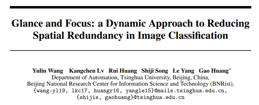 本文主要介绍我们被NeurIPS 2020会议录用的一篇文章:Glance and Focus: a Dynamic Approach to Reducing Spatial Redundancy in Image Classification。
