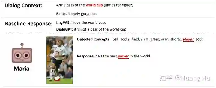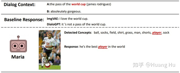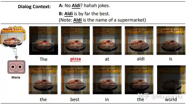 表1中的消融实验结果也验证了 MCP、VKB 的有效性。图7是一个可视化的例子,可以看出,当上下文谈到“Aldi”(一家连锁超市)的时候,Maria 能够“联想”到“Pizza”。图8/9 中是更多Maria对话的例子,具体的分析参见论文附录。