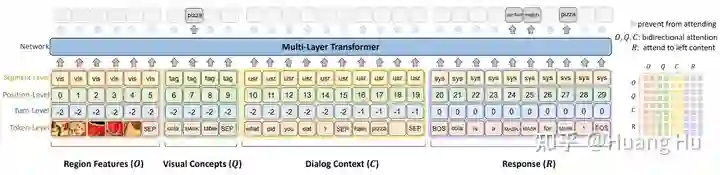 其中, 是第 个预测位置上目标视觉概念标签的索引。因此,当模型在预测 mask 的视觉概念时,会学习其与 region 特征、对话上下文以及其他没有 mask 的视觉概念之间的对应关系。
