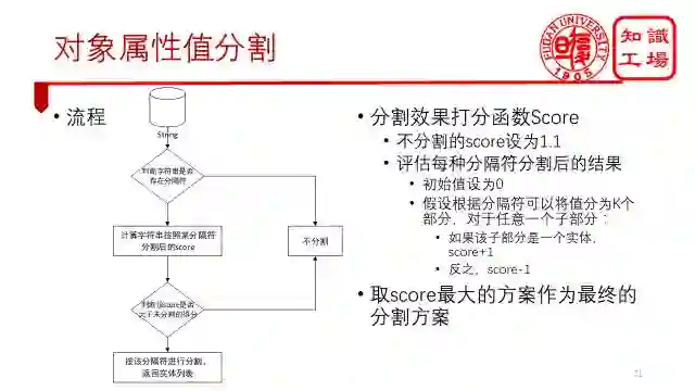 所以,数据清洗模块我们分为了三个部分,首先属性融合,将所有等价属性合并,比如英文名和英文名称。接下来对日期属性值进行归一化,转化为统一的日期格式。最后,再通过一个值分割算法,将所有多值的情况分开。