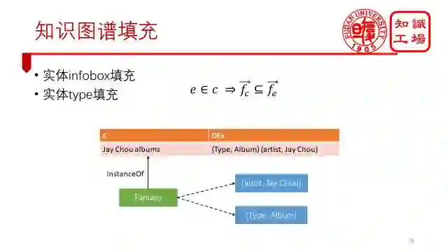 有了一些固有特征集合,我们就能对知识图谱进行填充了。例如,根据固有特征集合的第二个性质,我们能做实体的infobox填充和type填充。
