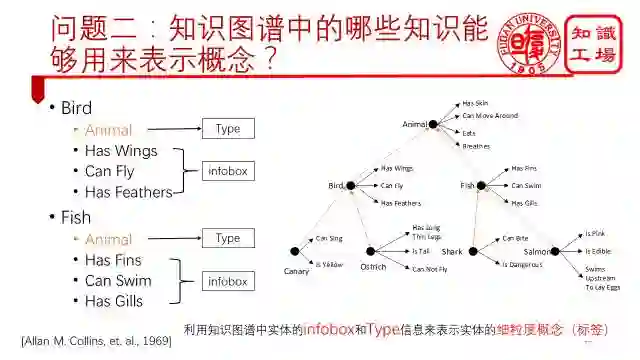 第二个问题是知识图谱中的哪些知识能够用来表示概念?我们根据Allan Collins人工定义的概念的固有特征集合可以发现,可以通过实体的infobox和type信息来表示。