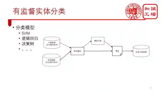 另外一种是有监督的实体分类。这种最为简单,如果你有充足的训练集的话,那么不管你用哪个模型,比如支持向量机、逻辑回归、决策树等等,都能取得非常好的效果。