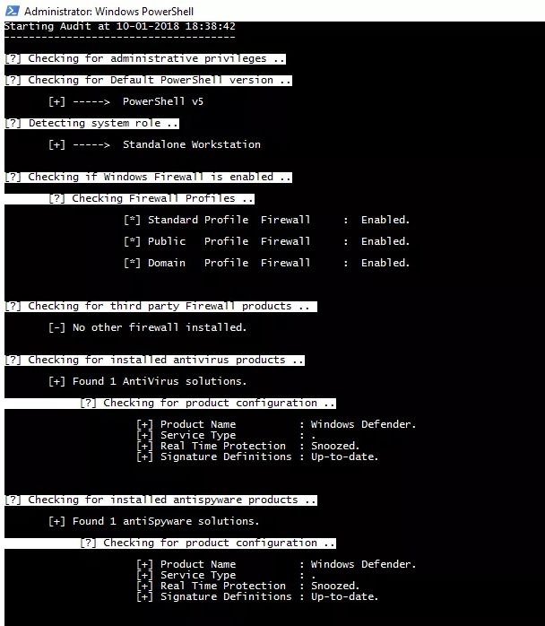上图显示,脚本为我们识别出了防火墙和杀毒软件,并启用/禁用其功能。