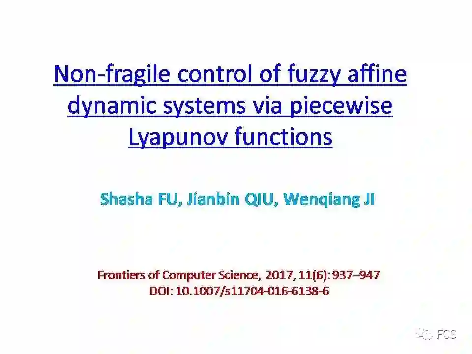 本篇「优青论坛」文章研究了一类不确定模糊仿射系统的鲁棒 H无穷 静态输出反馈控制器设计问题。「优青」作者为邱剑彬。