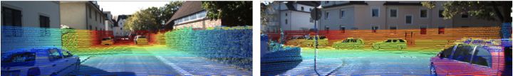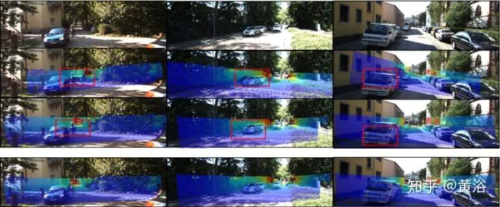 即使在这些情况下,训练的CNN网络仍然能够改进标定。使用新的估计标定参数可以再次投影深度点,从而产生更多供相关计算的深度点。然后,该步骤多次迭代即可。