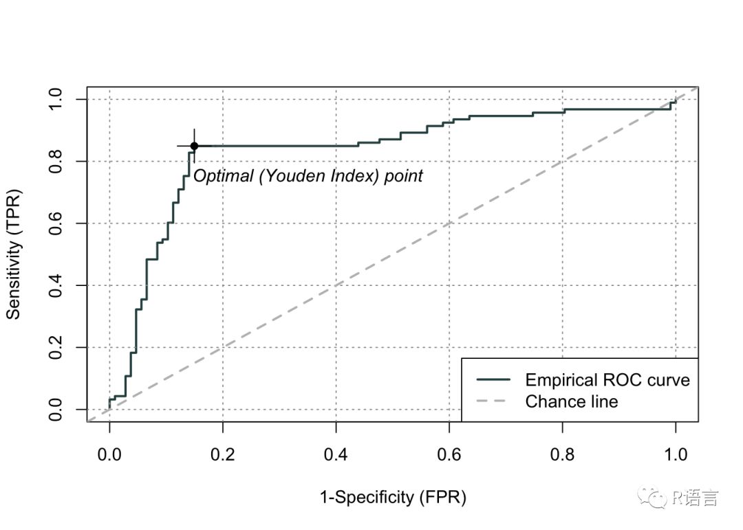 ROCit是一种用于绘制ROC曲线和其他二元分类可视化的新工具,它在1月份迅速蹿红,并继续流行。如果我通过下载自动过滤原始搜索,就永远不会发现它。默认的图包括Yourden’s J Statistic数据的位置。