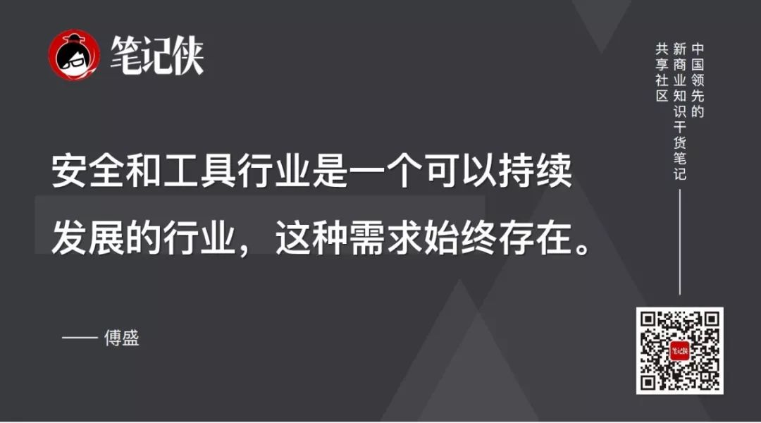 我们经过连年征战,终于找到了一块赖以长期发展的根据地,我们完全可以以此为基础,一边深耕,一边寻找机会,用匠人精神和以安全工具为核心的业务去打造百年猎豹。