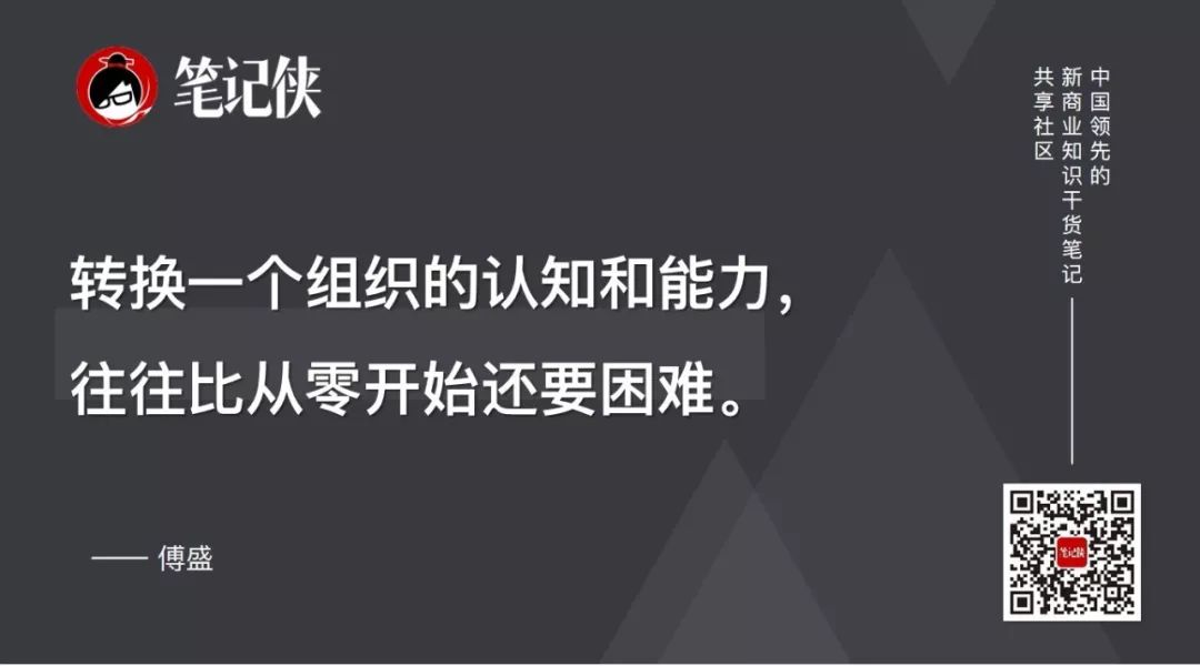 我们往往喜欢把个人的转变和企业的转变等同起来,其实并非如此。企业是独立的生命体,商业是冷酷的竞争,实现组织转型远比一个人切换赛道难很多!