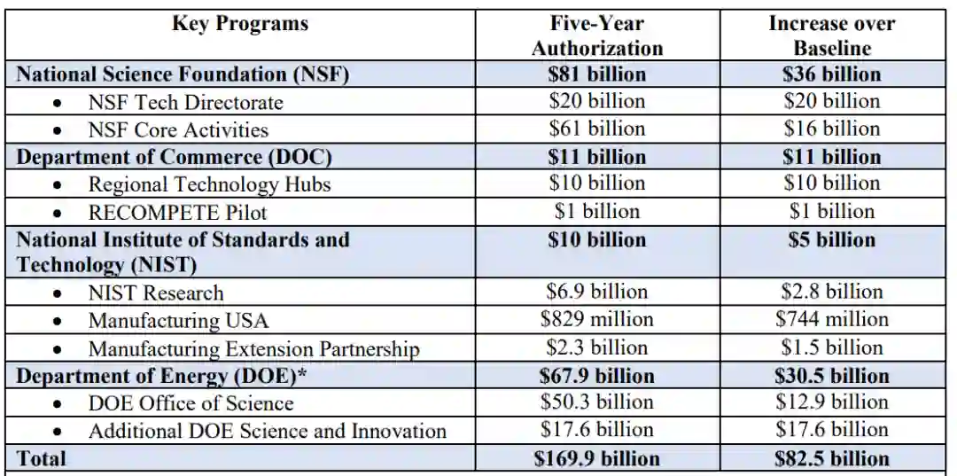 其中,拿的最多的两家是NSF和能源部,未来5年内至少能获得810亿美元和679亿美元,这还只是基本预算,如果算上额外追加,还能分别再多拿300多亿美元。