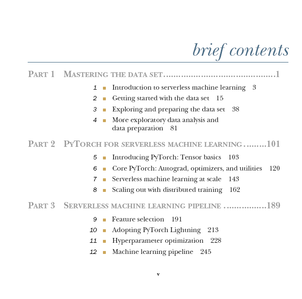 本书由三部分组成。在第1部分中,我列出了将机器学习系统投入生产的场景,描述了实验机器学习代码和生产机器学习系统之间的工程差距,并解释了无服务器机器学习如何帮助弥合这一差距。的第1部分,我将教会你如何使用公共云的serverless特性(Amazon Web Services)开始使用一个真实的机器学习用例,准备一个工作机器学习的数据集的用例,并确保你准备机器学习应用到用例。在第2部分中,我将介绍如何使用PyTorch深度学习框架为结构化数据集开发模型,解释如何在云中分布和扩展机器学习模型训练,并展示如何部署经过训练的机器学习模型以根据用户需求进行扩展。在此过程中,您将学习评估和评估替代机器学习模型实现的性能,以及如何为用例选择正确的机器学习模型。在第3部分中,我将向您介绍机器学习实践者经过战斗测试的技术,并涵盖特征工程、超参数调整和机器学习流水线组装。读完这本书,您将建立一个机器学习平台,它吸收原始数据,为机器学习做好准备,应用特征工程,并训练高性能、超参数调整的机器学习模型。