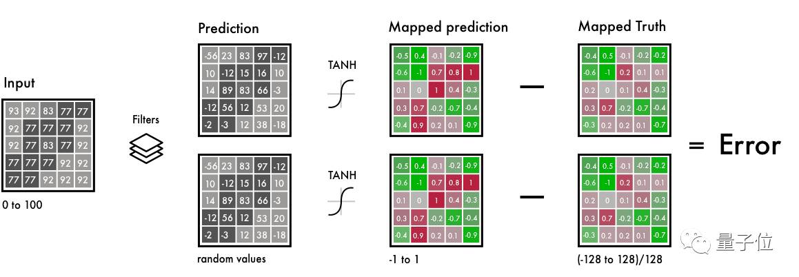 计算得到最终误差后,网络会更新过滤器以减小全局误差。网络会留在这个循环,直到误差达到足够小。