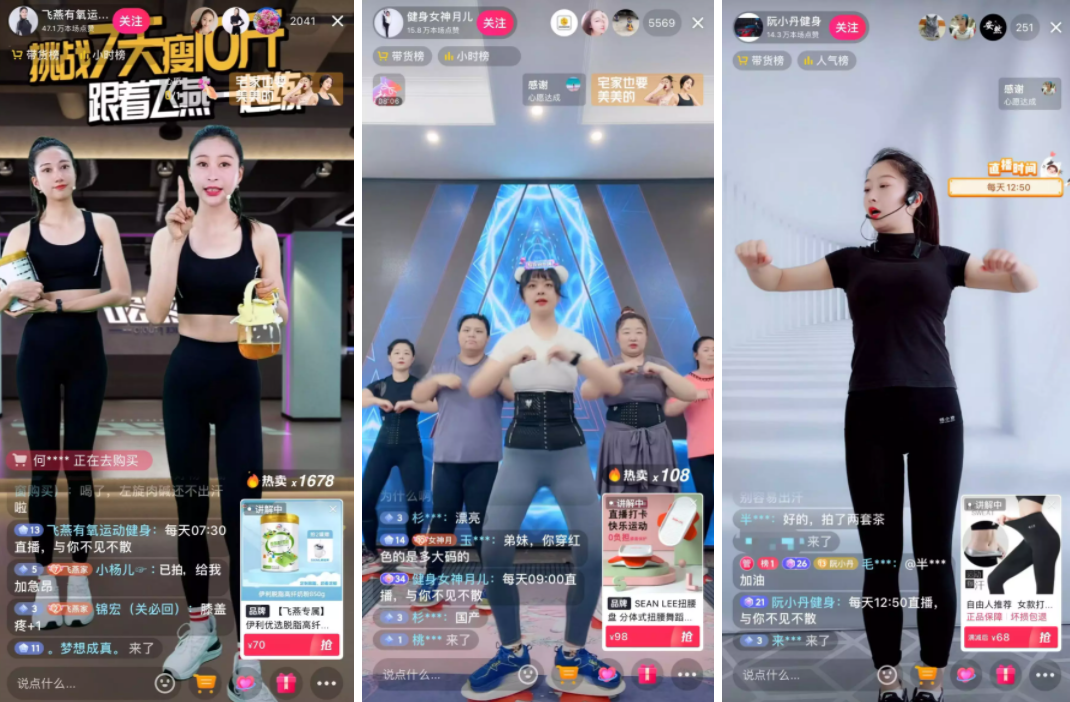 飞瓜数据显示,4月11日-17日,抖音平台的“艺美有氧形体”“Mooki瑜伽”“牙牙有氧健身”等健身直播账号均涨粉30万以上;快手平台“猫宁逆袭记”“帅迪健身”“飞鱼运动达人”“子荷形体有氧健身操”直播热度也创下新高。此外,B站、小红书上的不少健身博主,也纷纷开始从视频转战直播。