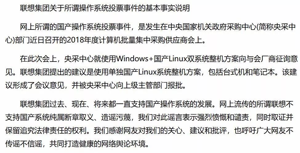 0、投票反对预装国产系统?联想辟谣
