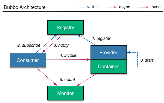 由于服务层我们主要使用的是dubbo实现的RPC功能,dubbo的架构图如下: