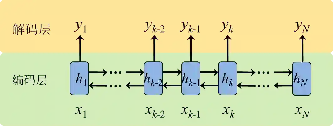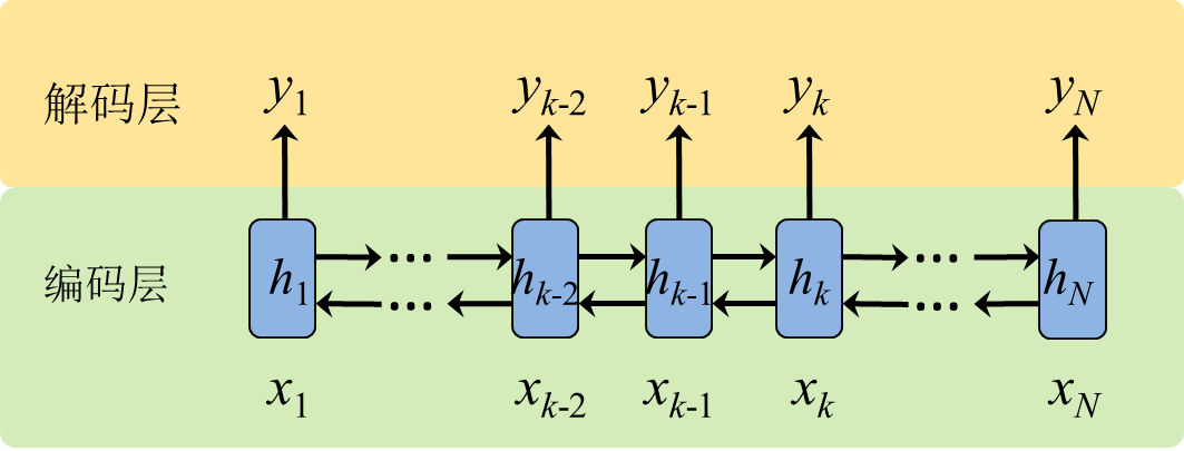 双向RNN一般用于端到端(end-to-end)的学习任务,例如,图像分类、文本匹配、机器翻译等任务中一般会采用双向RNN结构。不同于原始的单向RNN,双向RNN还构建了从后至前的序列关系,这使得当前编码的表达h同时包含了上/下文的环境信息。双向RNN的展开形式如图5所示。在端到端的学习任务中,由于双向RNN所捕捉到的信息更为充足,因此在数据充足的情况下其对问题的解决效果也一般会优于单向结构。但在例如语言模型等建模序列产生过程的任务中,由于对序列的观测是逐个给定的,这种情况下只能使用原始的单向RNN来处理。
