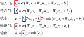 扩展: 关于LSTM三种门的具体形式化为: 其中W表示模型参数,x表示输入,b表示偏移量(bias),t表示当前迭代步。结合图2可以进一步地加深对三种门作用的理解。 |