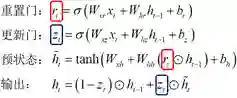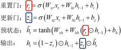 扩展: 关于GRU两种门的具体形式化为: 其中W表示模型参数,x表示输入,b表示偏移量(bias),t表示当前迭代步。结合图4可以进一步地加深对三种门作用的理解。 |