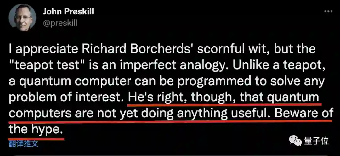 量子优越性概念的提出者John Preskill近期在与同行的交流中也表达了对这方面的担忧。