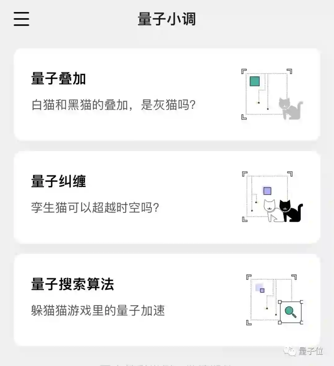 从各大应用商店或者官网,都可以下载到一个名叫量易伏的APP,打开后就见物理学四大神兽之一——薛定谔的猫坐镇其中。