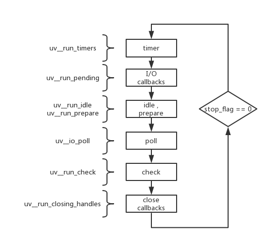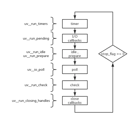它的核心是提供了一个 eventloop ,每个 event loop 包含了六个阶段: