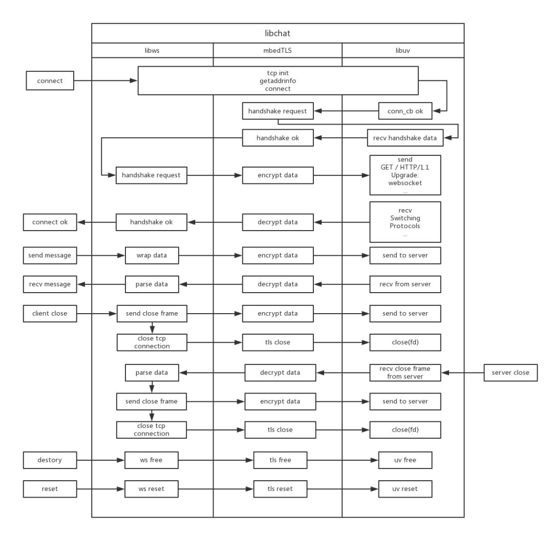 Chat 层:负责提供底层通信使用的 c 接口,包含连接、读写和关闭