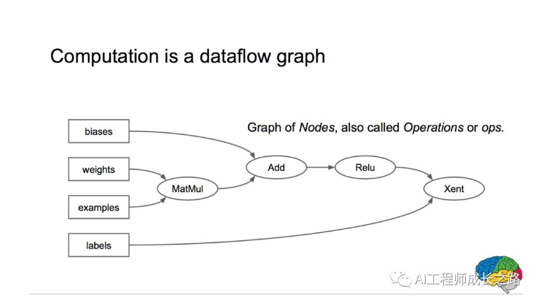 Tensorflow将数值计算表达为一个计算图,图中的节点为算子,图中的边为多维数组。