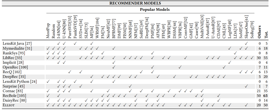 该算法库实现的推荐模型数量也比大部分的同类型的推荐算法库数量多。