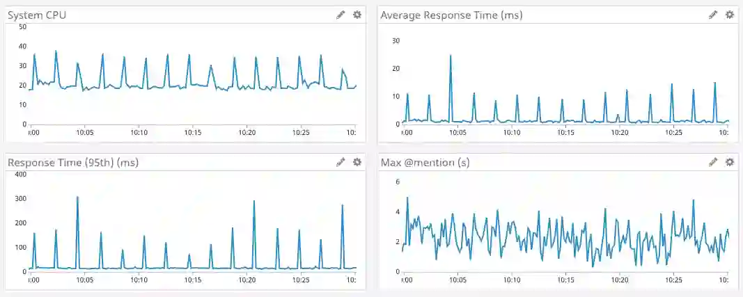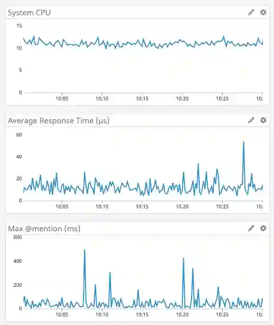 下面的结果不言自明。注意,现在平均时间以微秒计算,获取提及数的最大耗时以毫秒计算。