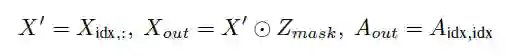 输入的图通过上文中提及的Masking操作处理之后,得到的要保留节点组成的新图的表示如下: