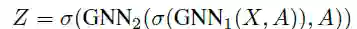 若GNN采用节点特征与邻接矩阵作为输入,注意力分数Z∈R^{N×1}的的计算表示为: