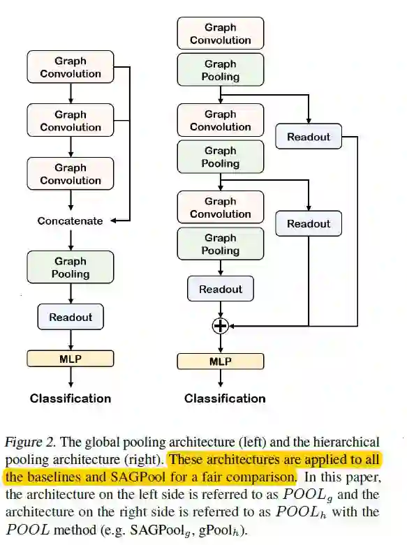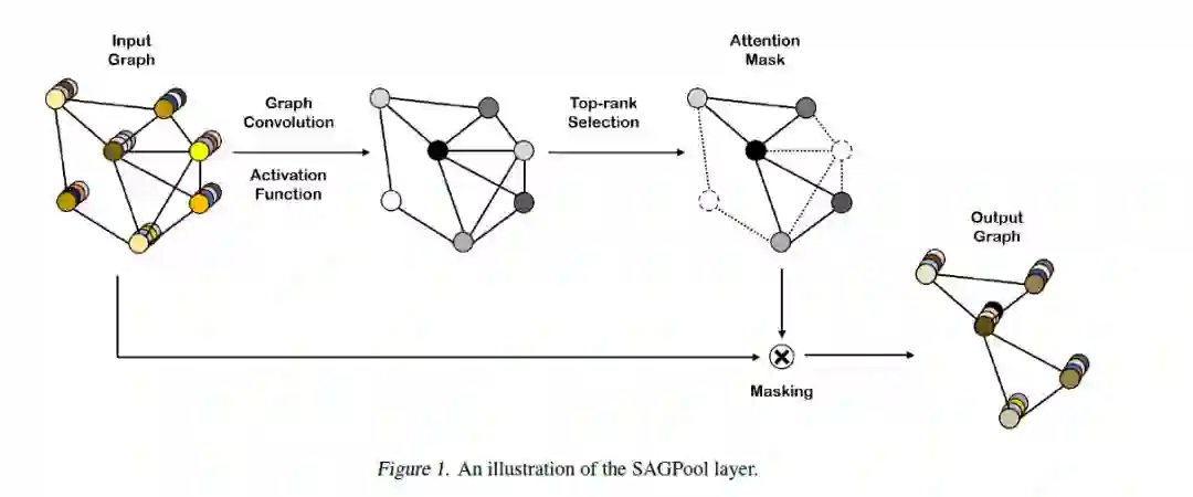 先前的图池化方法存在参数复杂(DIFFPooL)以及无法利用图拓扑结构信息(Graph u-net)的问题,因此,我们提出了SAGPool,它是一种在分层图池化的上下文中用于GNN的自注意力图池方法,同时可以以端到端的方式用更少的参数学习分层表示。