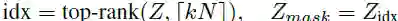 top-rank是返回[kN]中分数靠前的节点的索引
