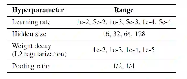 由于全局池体系结构最大程度地减少了信息丢失,因此它在节点(NCI1,NCI109,FRANKENSTEIN)较少的数据集上的性能优于分层池体系结构。但是,分层结构在具有大量节点(D&D,PROTEINS)的数据集上更为有效,因为它可以有效地从大规模图形中提取有用的信息。因此很难确定全局池体系结构或分层池体系结构是否完全有利于图分类。