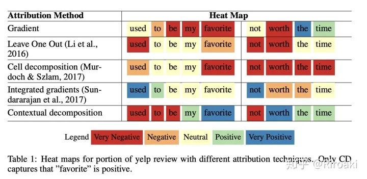 题外话:值得注意的是,这篇文章的比较中提到积分梯度方法比CD(Contextual Decomposition,这又是另一个方法了)和LRP要差?我特地去找了他的论据如下:
