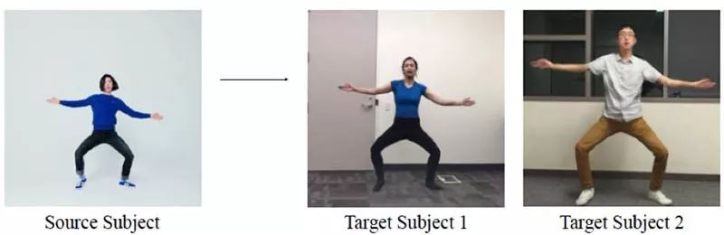 加州大学伯克利分校的研究人员提出了一种简单的方法,可以让业余舞蹈演员像专业舞蹈演员一样表演,从而生成视频。如果你想参加这个实验,你所需要做的就是录下你自己表演一些标准动作的几分钟的视频,然后拿起你想要重复的舞蹈的视频。