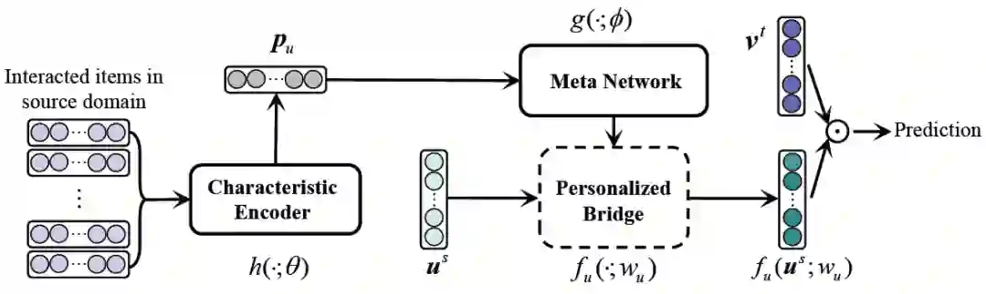 事实上,由于个体的差异,不同领域的偏好间的复杂关系是因人而异的。因此,很难用一个公共的偏好桥来抓获这样复杂多样的关系。为了解决现有方法的不足,有必要使用个性化的桥来建模不同用户的偏好关系。