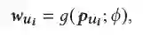 将得到的用户特质输入到元网络(meta network),输出个性化的偏好桥: