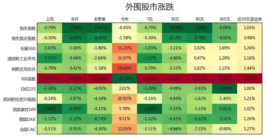 上周外围市场仍然继续下跌,恒指周跌0.79%;