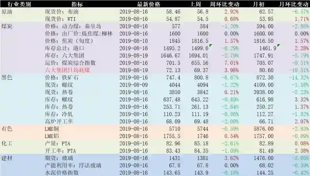1、工业品价格多数表现为下跌,8月工业生产表现仍一般