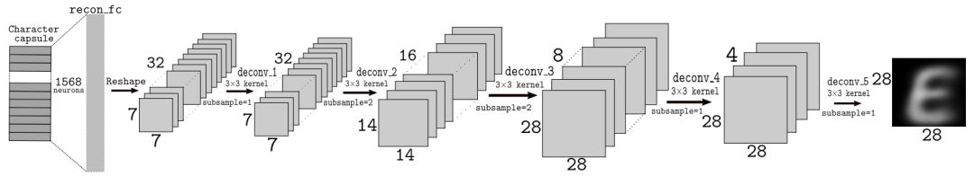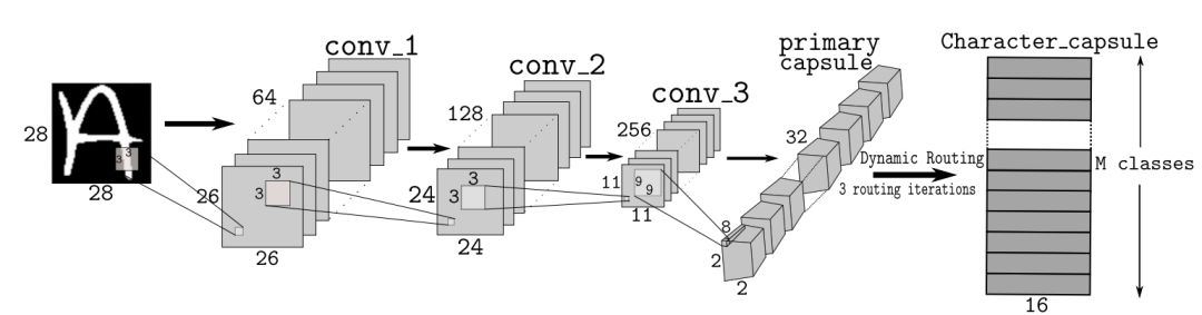 我们提出了一种由胶囊网络和解码器网络组成且针对字符识别任务的架构,如图 1 和图 2 所示。
