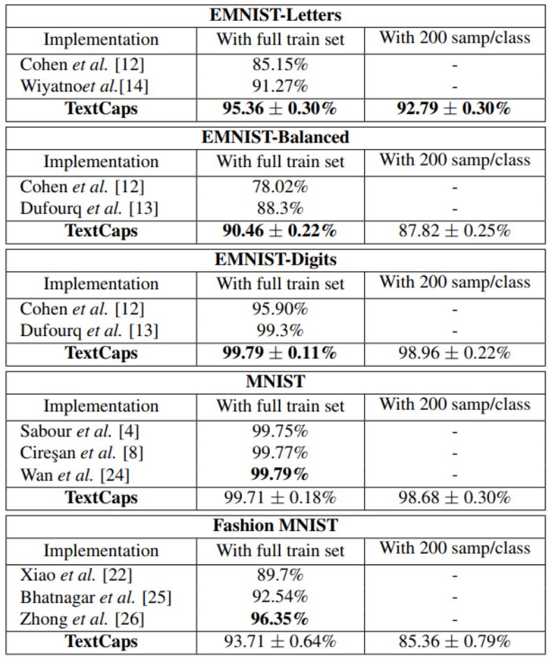 在所有可用训练样本上训练该系统后,在 EMNIST-letters、EMNIST-balanced 以及 EMNIST-digits 字符数据集上得到的结果都优于当前最佳结果;