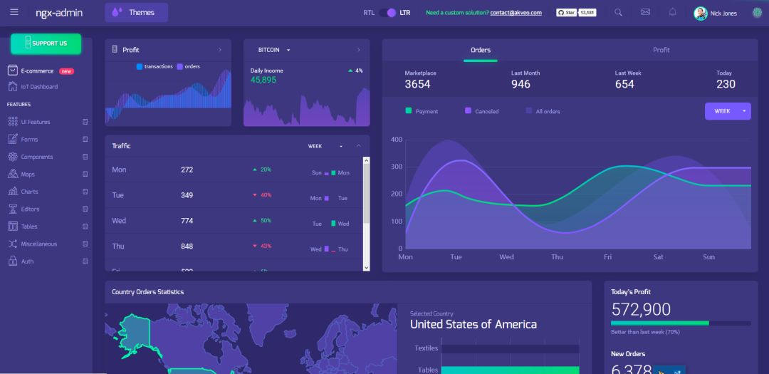 基于 Angular 2, Bootstrap 4 和 Webpack 的后台管理面板框架。