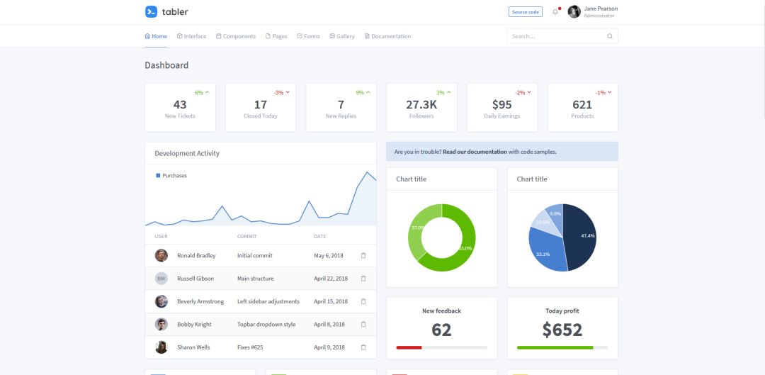 构建在 BootStrap 4 之上的免费的 HTML 控制面板框架